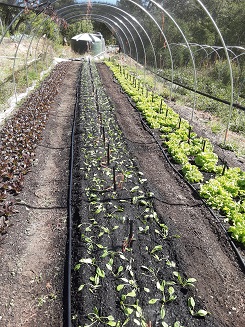 A little further out: Snap Peas, Snow Peas, red mustard greens, red beets